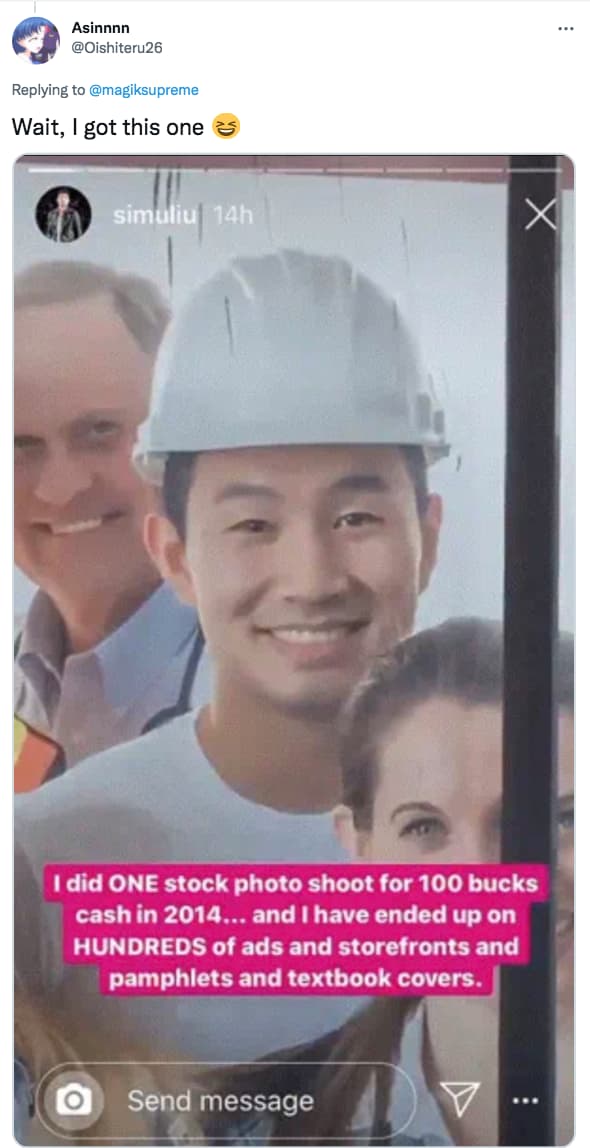 . Fans are reacting on Twitter to discovering the stock photos Shang-Chis Simu Liu used to model for. The actor referred to his latest superhero. Simu Liu 刘思慕 SimuLiu September 6 2021 The Kims Convenience actor then responded with shade about the low prices iStock pays its models.